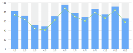 如何再底部显示月份?如何绘制中间的圆点?直接上代码:
