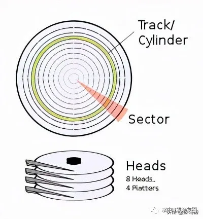 每一片磁盘都有两面,都可以以磁性的方式来记录数据,而这些数据的写入和读取,都是靠盘片上方的磁头来操作的。通常来说,磁盘有几个主要的概念。一是磁道,一是扇区。因为磁盘是一个圆,所以它运作的时候,是高速旋转的,这样子,在磁盘上的一个个同心圆,就被称为磁道,同一个磁道是一个同心圆,磁头无需移动就能读取。而垂直于切向的半径方向上的每个磁道被等分为若干个弧段,这些弧段便是硬盘的扇区。硬盘的第一个扇区,叫做引导扇区。