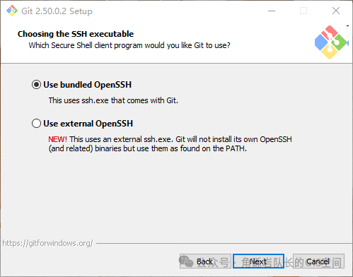 默认选项为使用Git自带的ssh.exe,也可以根据个人需要选择其他选项,选择完毕,点击【NEXT】进入下一步;