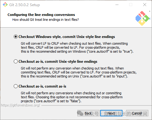 选择默认选项【Checkout Windows-style, commit Unix-style line endings】,选择完毕,点击【NEXT】进入下一步;