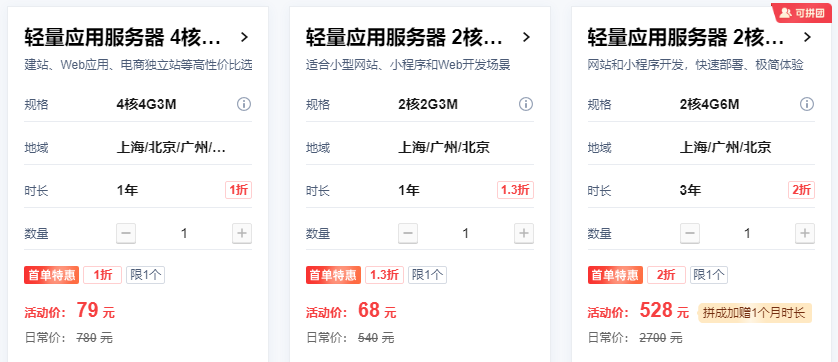 腾讯云近年来在配置和价格上持续加码,尤其三年期套餐,年均成本不到200元,带宽充足、性能稳定,非常适合打算长期运营项目的用户。