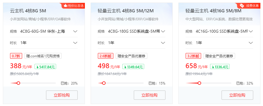 云服务器促销活动更新频繁,部分特价库存有限,随时可能下架。