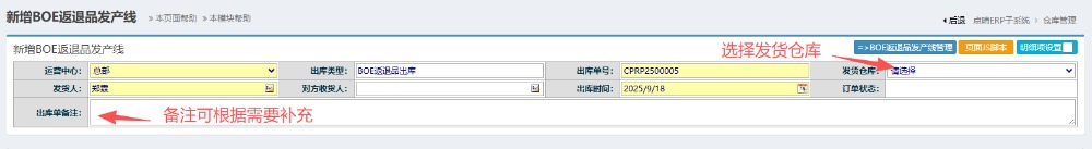 :点晴ERP-BOE返退品发产线出库流程