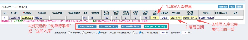 5.提交之后,回到左侧功能菜单里找到“返退品生产入库管理