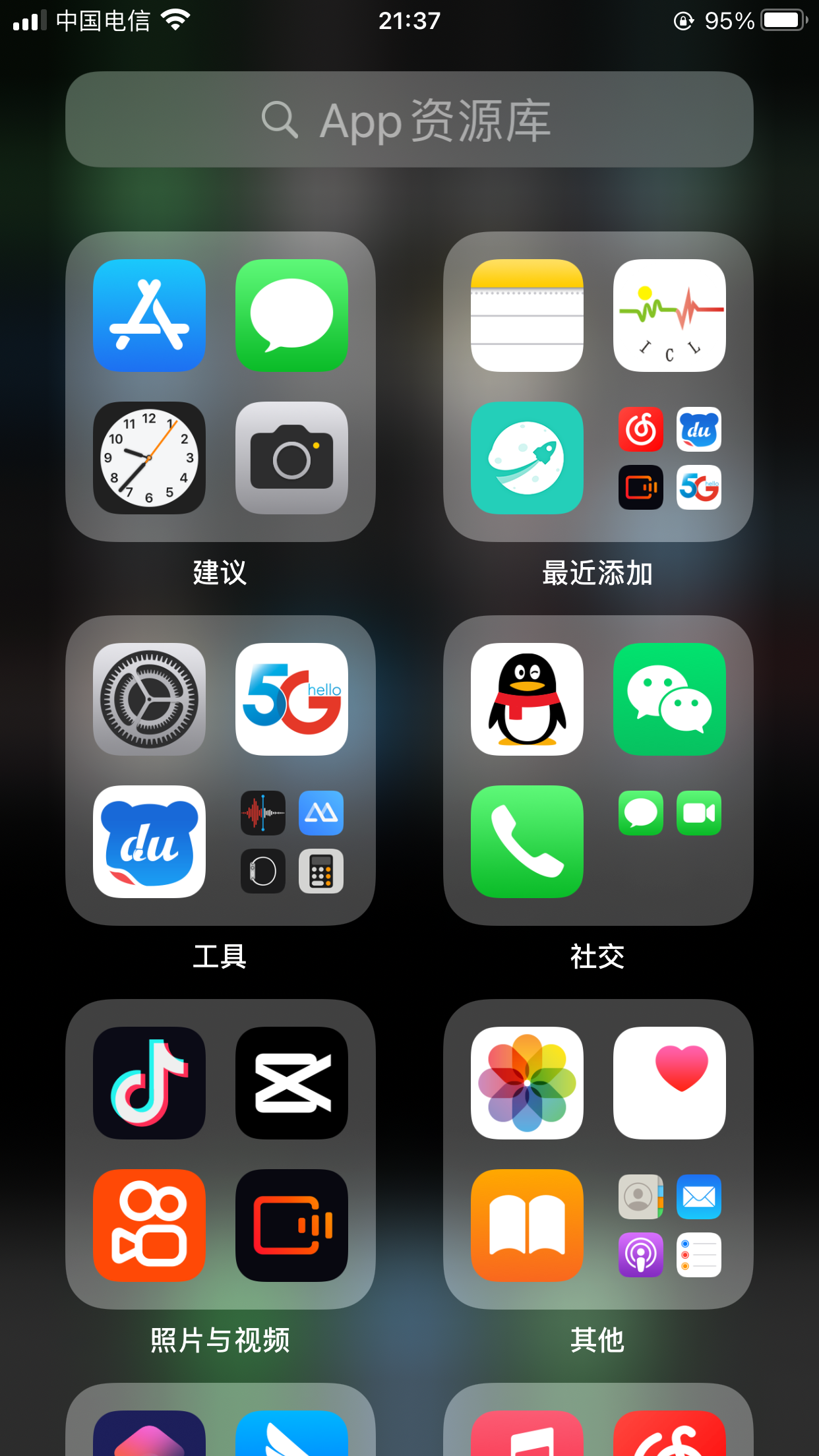 桌面一直向左滑动打开APP资源库就可以找到下载的APP。
