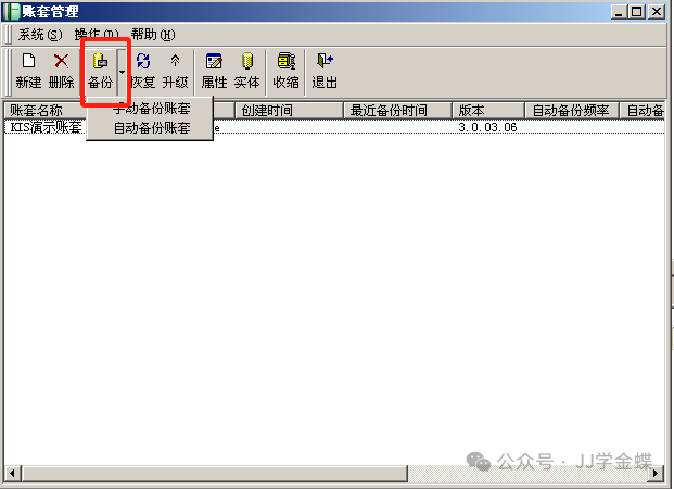 1、金蝶KIS专业版14.0及之前版本的账套备份: