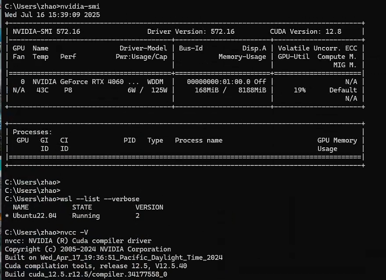 上面版本号(如 535)要与你 Windows 中的驱动版本一致或兼容(你当前是 572,可以试安装 nvidia-utils-525 或 535)。
