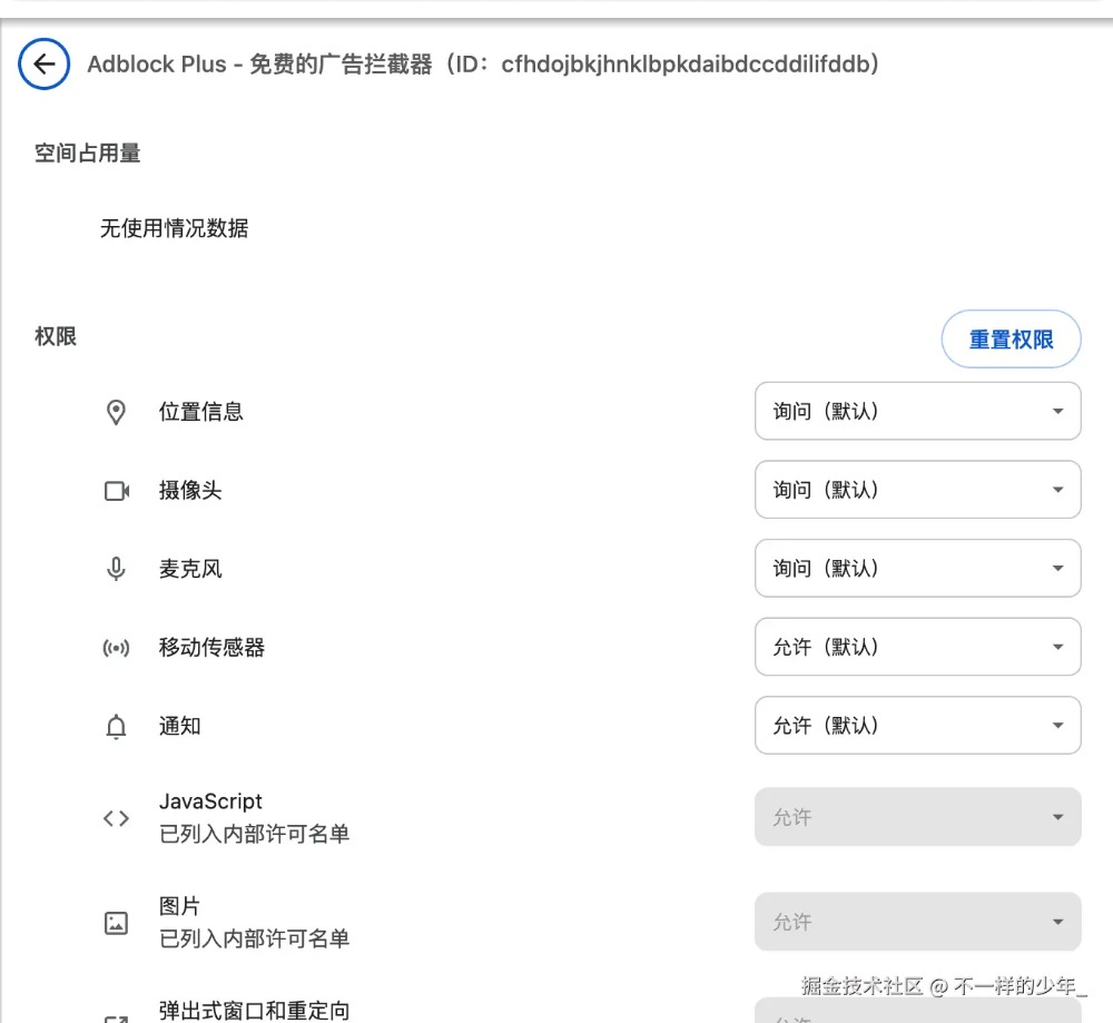 以Adblock Plus为例,这是一个免费的广告拦截器:它的权限可以读取所有网站上的数据